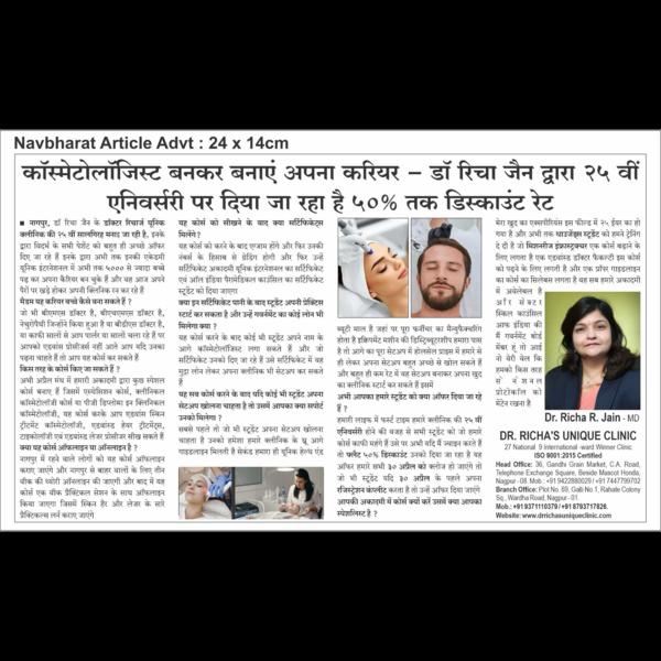Dr Richas Unique Clinic 26th Anniversary Special offer in Clinical Cosmetalogy Course